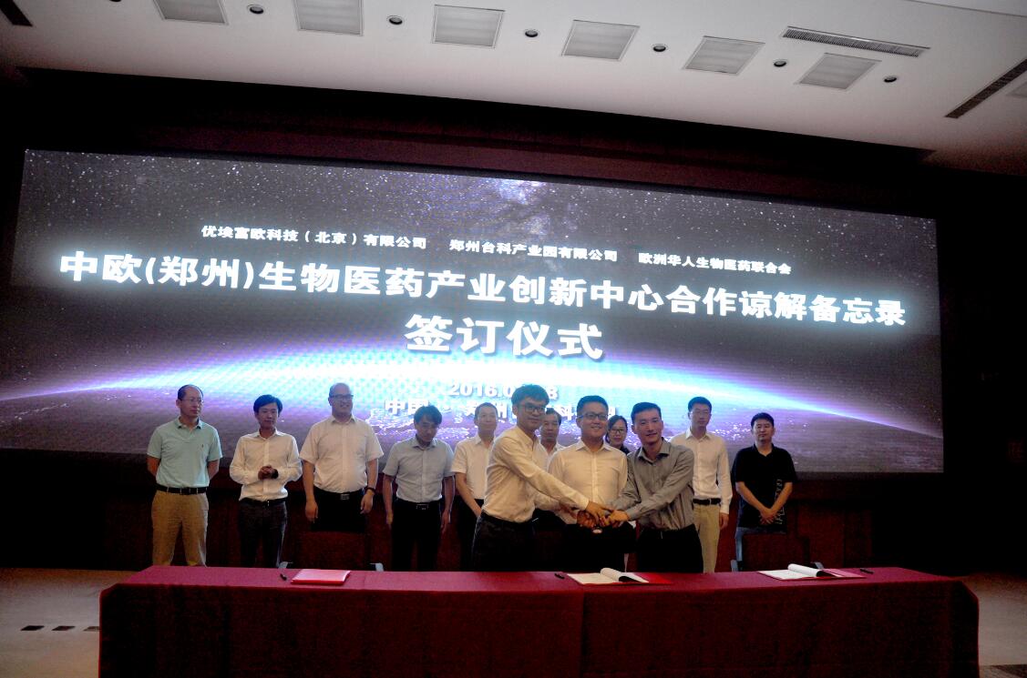 2016年7月8日,优埃富欧科技(北京)有限公司、郑州台科产业园有限公司、欧洲华人生物医药联合会在郑州航空港经济综合实验区郑州台湾科技园共同签署了《中欧(郑州)生物医药创新中心合作谅解备忘录》,开启了“豫欧地方务实合作的新航线”。